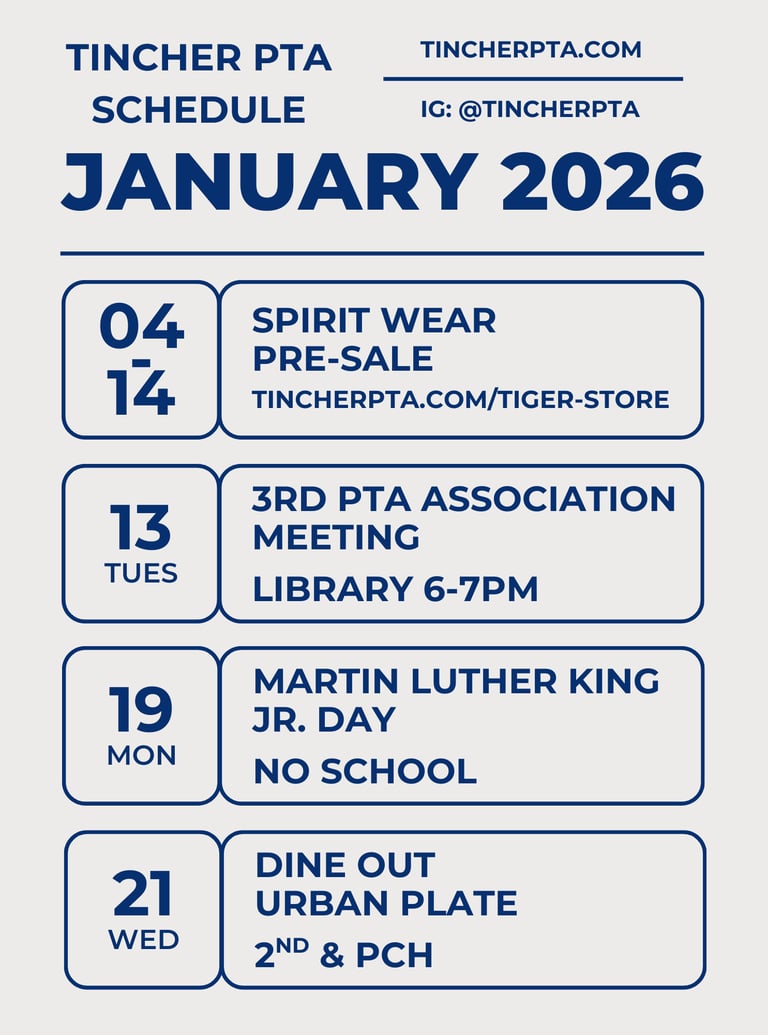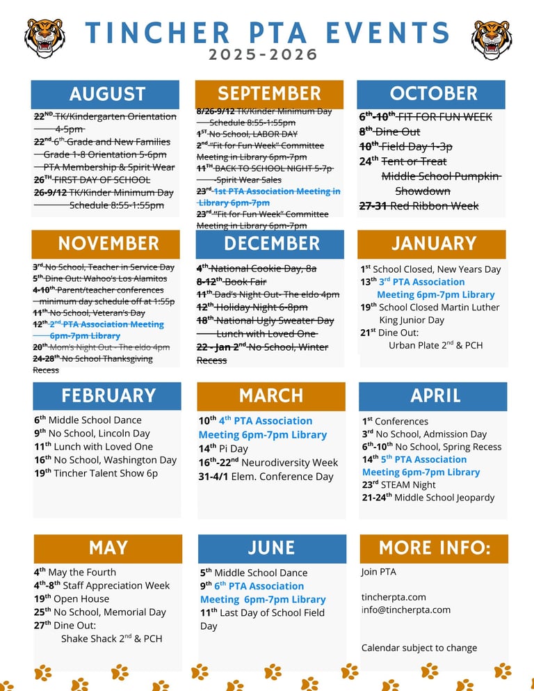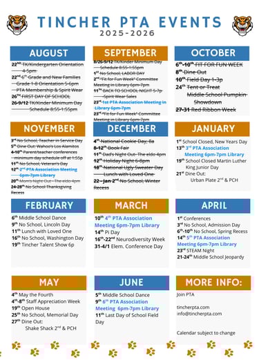 PTA EVENTS CALENDAR